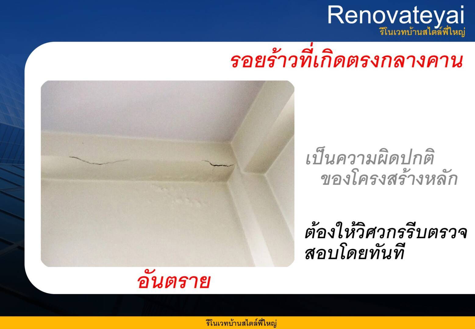 2. รอยร้าวที่เกิดจากงานโครงสร้าง โดยเฉพาะจะเกิดขึ้นกับบ้านพักอาศัย และอาคารพักอาศัยรวม เช่น คอนโด หรือ อพาร์ทเมนต์